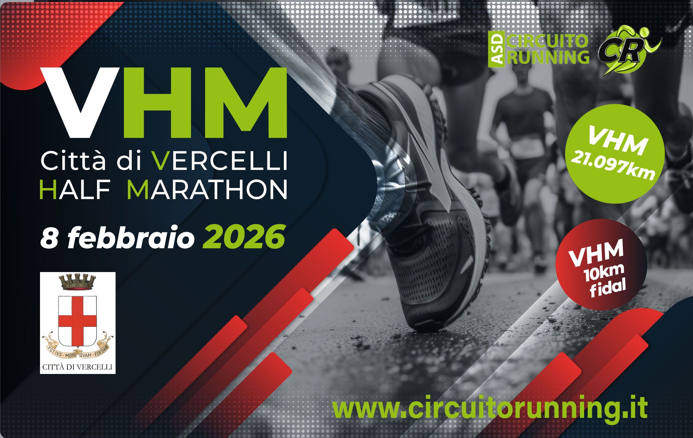 Il file dovrà essere inviato aThis email address is being protected from spambots. You need JavaScript enabled to view it. insieme alla dimostrazione di bonifico da effettuare a favore di A.S.D. Circuito Running - IBAN: IT 74 F 02008 45222 000 100 968 603 – causale: iscrizione di “NOME TEAM” alla Città di Vercelli Half Marathon (oppure alla 21 KM E.P.S.) 2026.