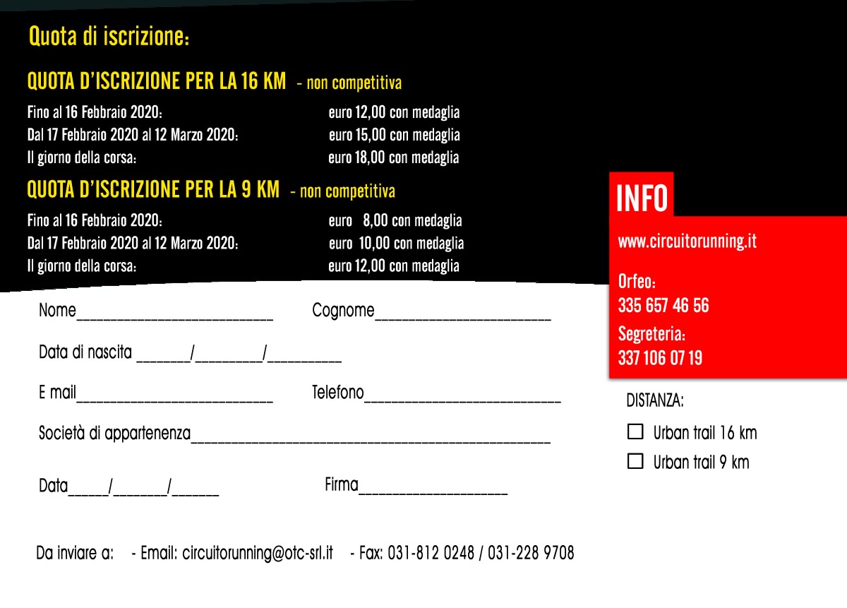 Causale del versamento: ISCRIZIONE Urban Trail Pettenasco 2020