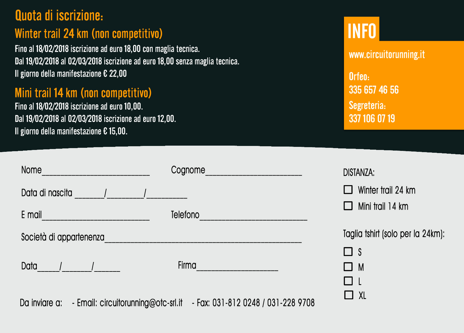 3) Oppure in contanti presso il punto d'iscrizione Luciani Sport - Borgomanero (NO)
