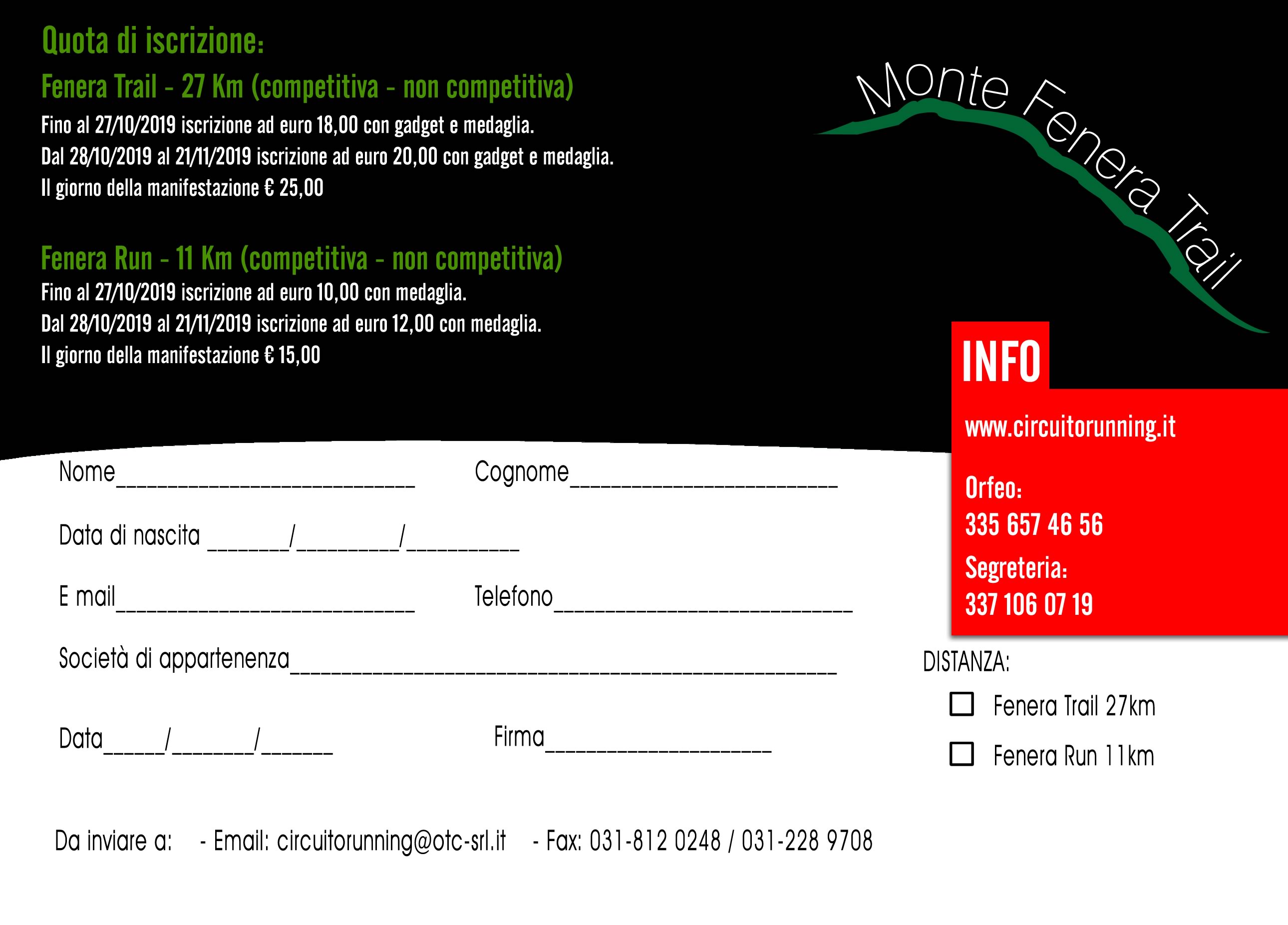 Causale del versamento: ISCRIZIONE Monte Fenera Trail